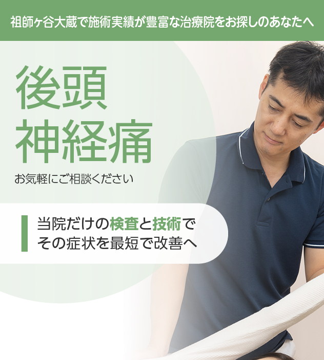 筋肉や関節のみならず自律神経やリンパなど多角的にアプローチする当院の新しい施術は後頭神経痛と非常に相性が良く、劇的に改善するケースも見られます。