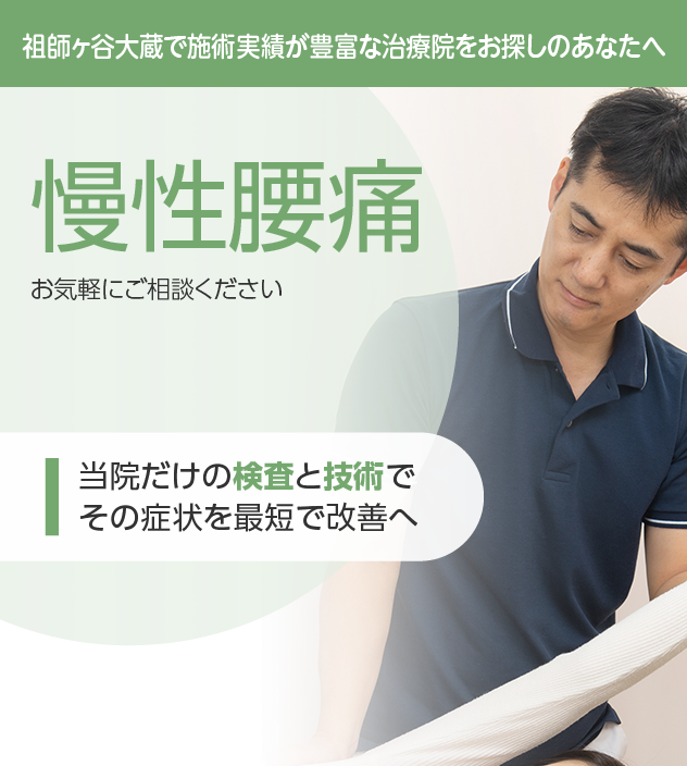 病院や他の治療院で改善しなかったとしても諦める必要はありません。慢性腰痛でお困りなら豊富な施術実績を誇る当院にお任せください。