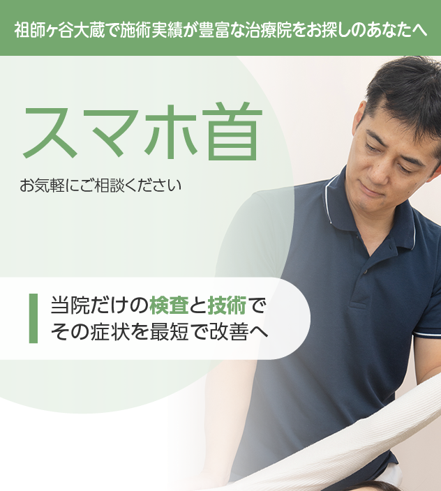 筋肉や関節のみならず自律神経やリンパなど多角的にアプローチする当院の新しい施術はスマホ首と非常に相性が良く、劇的に改善するケースも見られます